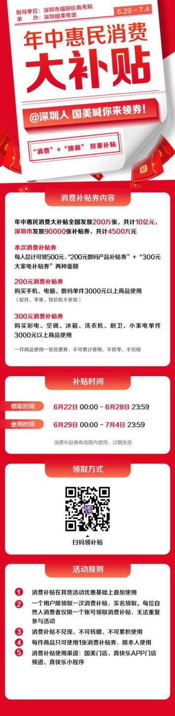 讀特客戶端·深圳新聞網(wǎng)2021年6月25日訊 (記者 常軍平)好消息!為提振消費(fèi)信心,積極推動(dòng)“拉內(nèi)需,促消費(fèi)”的政府惠民政策落地,加速經(jīng)濟(jì)發(fā)展。作為國(guó)內(nèi)零售巨頭的國(guó)美積極響應(yīng)號(hào)召,勇?lián)髽I(yè)責(zé)任,于6月21日-7月4日,攜全國(guó)多地政府部門(mén)全新開(kāi)啟“年中惠民消費(fèi)大補(bǔ)貼”活動(dòng),為促進(jìn)各地經(jīng)濟(jì)發(fā)展貢獻(xiàn)力量。