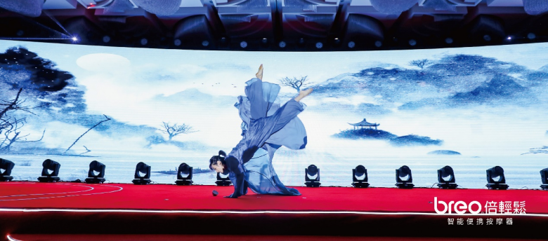 在晚會(huì)上,倍輕松邀請(qǐng)了風(fēng)暴舞者羅昱文表演中國(guó)古典舞《問月》?!拔ㄔ府?dāng)歌對(duì)酒時(shí),月光長(zhǎng)照金樽里?!边@支舞蹈?jìng)鬟f出中國(guó)東方美學(xué)和倍輕松的品牌哲學(xué)如出一轍的相似。舞者用古典神韻和舞姿將“與月相期邈云漢”的浪漫情懷表達(dá)的淋漓盡致。詩(shī)與酒,樂與舞,醉人心。