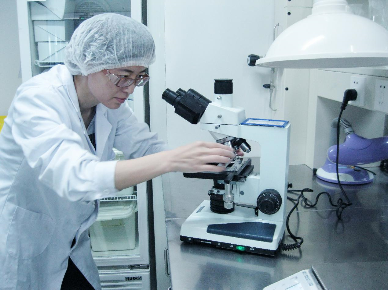 伊利質(zhì)檢人孟根花在進行產(chǎn)品微生物檢測