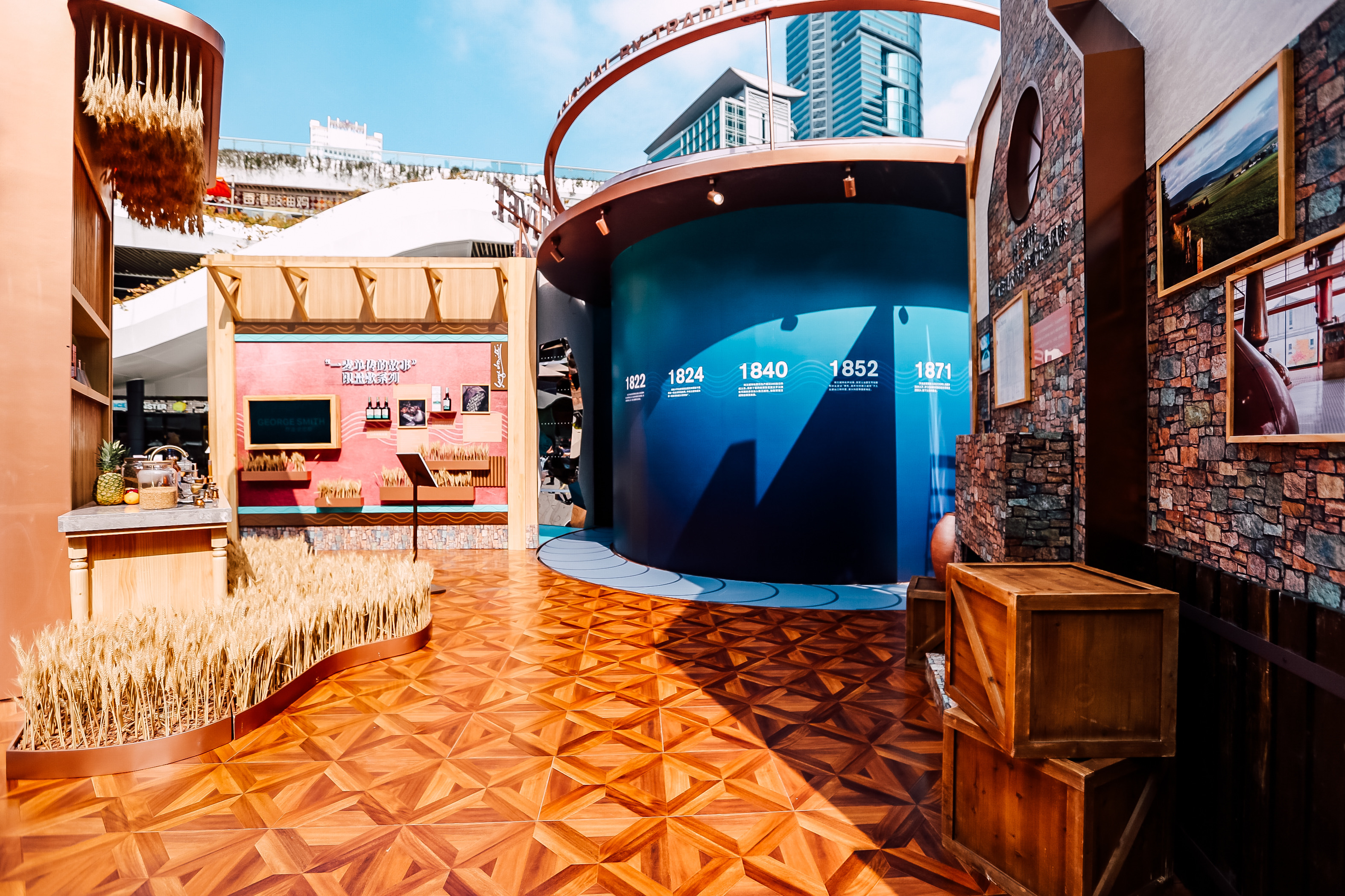 時(shí)光穿梭酒廠入口以“破墻而出”的投影裝置為來(lái)賓開(kāi)啟時(shí)光隧道的大門(mén),極具震撼力的視覺(jué)畫(huà)面展現(xiàn)格蘭威特打破傳統(tǒng)、大膽顛覆的創(chuàng)新精神,一段奇妙的旅程便由此開(kāi)啟。踏上傳送帶,來(lái)賓首先抵達(dá)還原了一間復(fù)古簡(jiǎn)陋的茅草屋的“創(chuàng)始人蒸餾室”,作為格蘭威特的發(fā)源地,品牌創(chuàng)始人喬治·史密斯先生百年前便在此秘密蒸餾了首批格蘭威特單一麥芽威士忌。古樸的木質(zhì)操作臺(tái)上擺放著調(diào)配實(shí)驗(yàn)中所需的各種儀器,灰磚墻面上展示著酒廠各時(shí)期的歷史照片,列架上則陳列了向喬治 ·史密斯先生致敬的創(chuàng)始人甄選單一麥芽威士忌,帶領(lǐng)威士忌愛(ài)好者們跨越時(shí)空回顧專屬格蘭威特的傳奇歷史和傳承。值得一提的是,繼12年秘密蒸餾發(fā)布后,格蘭威特“一麥單傳的故事”限量系列中的第二款全新杰作——12年創(chuàng)始佳釀限量版也在此處正式亮相。采用“初填雙橡木桶威士忌”制作理念,這款佳釀以其特有的宜人果香為原始的斯佩塞威士忌賦予了全新風(fēng)味。格蘭威特以此紀(jì)念喬治?史密斯先生成為當(dāng)?shù)芈氏全@得威士忌制作許可的蒸餾師的傳奇歷史,向其敢為人先的勇氣致敬。