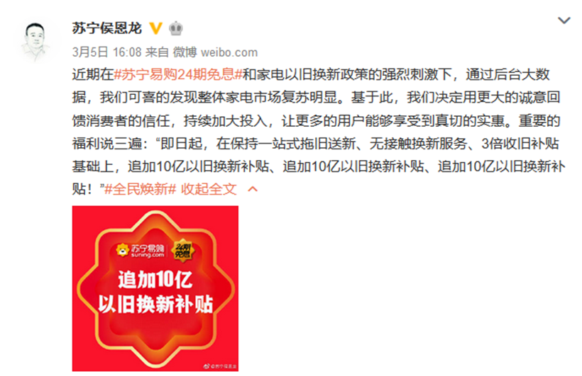 自2月10日聯(lián)合各大家電品牌推出“開倉(cāng)計(jì)劃”以來(lái),蘇寧315“全民煥新節(jié)”不斷往消費(fèi)市場(chǎng)注入強(qiáng)心劑。