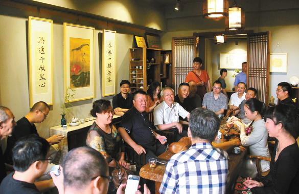 “現代人越來越注重生活美學,這次的展覽很貼近生活,我親眼見證這個書畫展的準備全過程,這些書畫家們既是內容撰寫者,又是書畫創(chuàng)作者,還是設計師和裝潢師。他們親自裁剪懸掛,布置調整,茶和書畫文化結合起來,剛好與善濟堂茶禪會館作為大眾服務的生活美學體驗館的理念不謀而合?!鄙茲貌瓒U會館女主人成潔曼告訴記者。