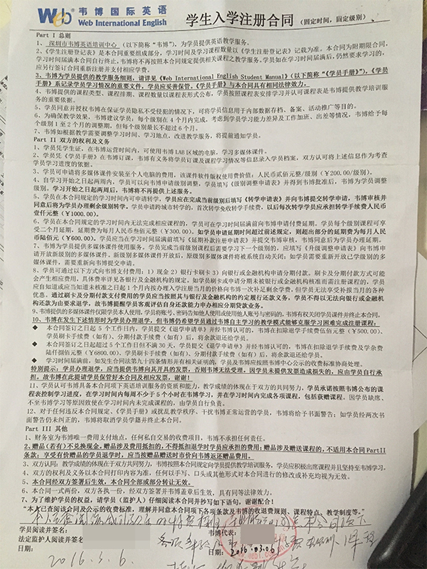 投訴對象:深圳韋博英語培訓中心