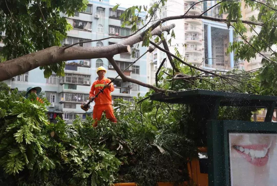 這幾天,經(jīng)過環(huán)衛(wèi)工人和綠化工人的辛勤勞動(dòng),全區(qū)累計(jì)清理生活垃圾352.6噸、綠化垃圾587.4噸,清理倒伏樹木4026棵、損毀樹枝2132株?!芭_(tái)風(fēng)過后樹葉、垃圾太多,這幾天特別忙,特別辛苦,沒有停過?!惫ぷ髟倜υ倮郏褐疫€是笑著說,“有這么多兄弟姐妹一起清理,看到街道慢慢變干凈,覺得再辛苦也是值得的!”