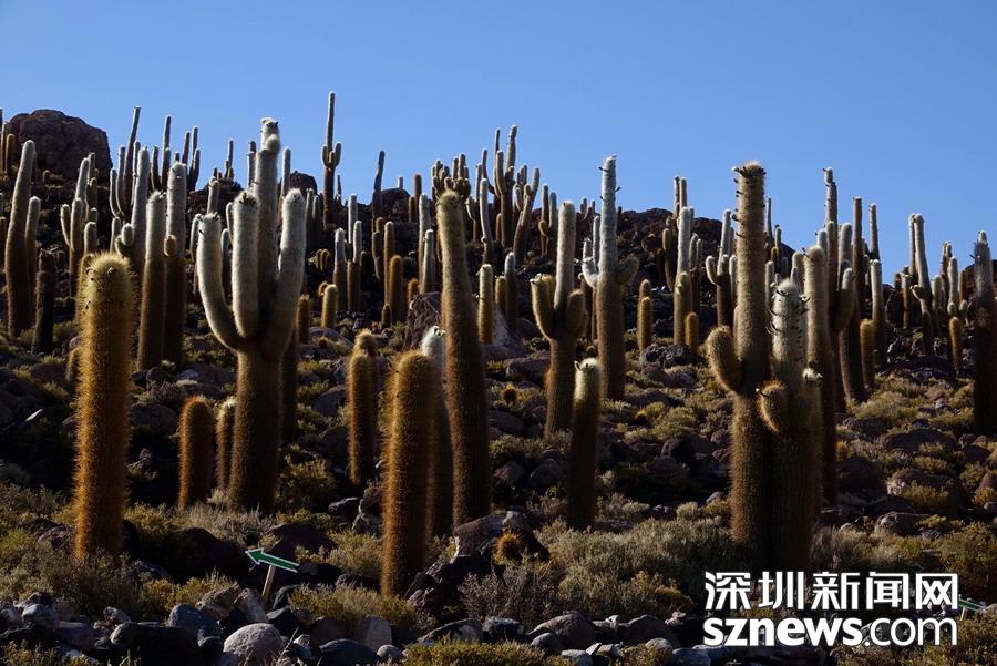深圳新聞網(wǎng)訊 烏尤尼鹽沼中,有一個孤立的小山頭,猶如瀚海中的小島。島上長滿巨大的仙人柱,據(jù)說有的已經(jīng)生長了上千年。這種形狀各異、耐鹽堿、耐干旱的熱帶植物豐富了鹽沼的風(fēng)光,構(gòu)成絕無僅有的世界奇觀。 李仁奇 攝
