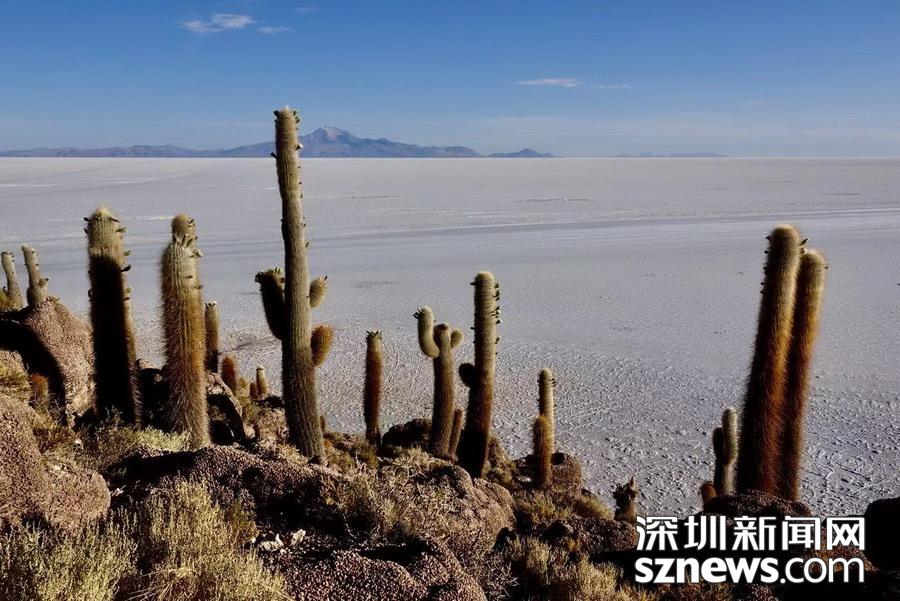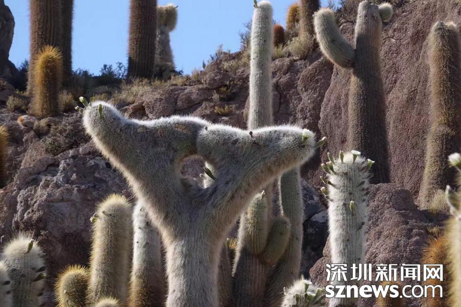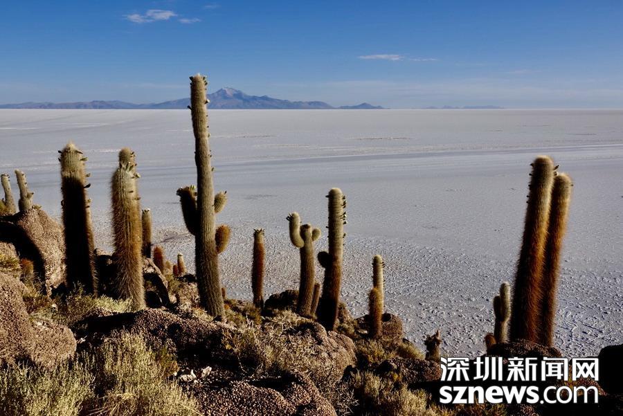 深圳新聞網(wǎng)訊 烏尤尼鹽沼中,有一個孤立的小山頭,猶如瀚海中的小島。島上長滿巨大的仙人柱,據(jù)說有的已經(jīng)生長了上千年。這種形狀各異、耐鹽堿、耐干旱的熱帶植物豐富了鹽沼的風光,構(gòu)成絕無僅有的世界奇觀。 李仁奇 攝