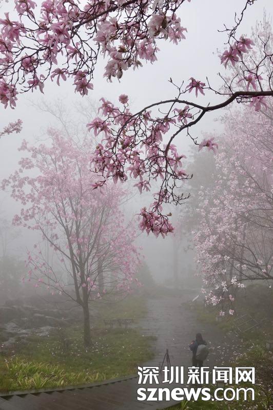 北川藥王谷,雨霧濛濛之中觀賞盛開(kāi)的辛夷花,宛若置身仙境......李仁奇 攝