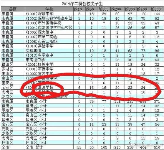 4月29日,有家長在深圳論壇以《什么樣的漏洞讓外省學(xué)生“人籍分離”的“高考移民”搶占了廣東考生名額》為標(biāo)題發(fā)帖稱,深圳市高三年級第二次模擬考試前幾名學(xué)校分布成績單顯示,前十名單里,民辦學(xué)校富源學(xué)校獨(dú)占6位,遠(yuǎn)超深圳中學(xué)、深圳實(shí)驗中學(xué)、深圳外國語學(xué)校、深圳高級中學(xué)深圳四大高中。此外,一模成績排名里,全市文理科前100名中,富源學(xué)校也有18人。據(jù)了解,2016年至2018年這三年,富源學(xué)校的高中錄取分?jǐn)?shù)線分別是329分、342分、336分,而深圳四大名校的錄取分均在440分左右,這相比低了100分左右。該家長表示:“富源學(xué)校的中考錄取生源并無很大優(yōu)勢?!备咧腥雽W(xué)成績一般,可今年一模二模的成績卻考的非常好,難道真的是“完美逆襲”?