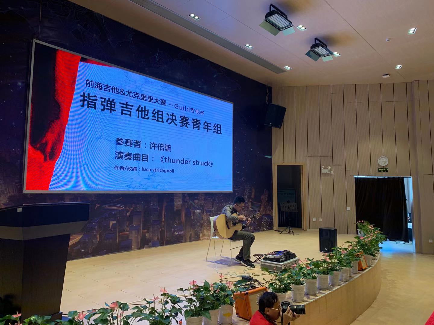首屆“前海吉他&尤克里里大賽”分古典吉他,吉他彈唱,指彈吉他和指彈尤克里里四個(gè)科目,共32位決賽選手聚集前海深港青年夢(mèng)工場(chǎng)一決勝負(fù)。