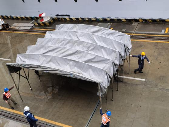 疫情就是命令,防控就是責(zé)任。目前正值春運(yùn)保障高峰,蛇口郵輪母港作為重要交通樞紐,接到歌詩達(dá)“威尼斯”號(hào)郵輪重大疫情防控指令后,在政府機(jī)構(gòu)的統(tǒng)一領(lǐng)導(dǎo)、招商蛇口的組織部署及關(guān)檢單位的協(xié)同配合下,全體員工勇?lián)?dāng)、敢作為,把維護(hù)旅客平安出行和員工身體健康作為“第一要?jiǎng)?wù)”,全面落實(shí)聯(lián)防聯(lián)控措施,構(gòu)筑起群防群治的嚴(yán)密防線。