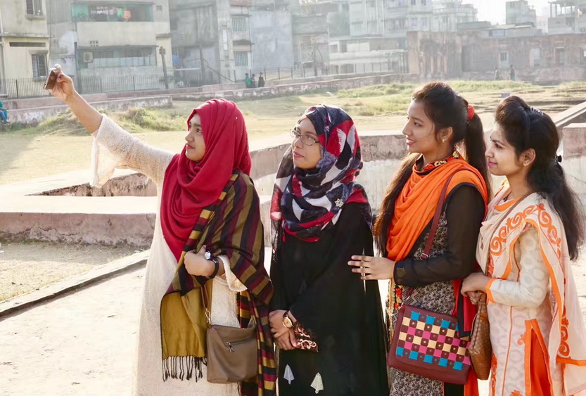 在達卡幾天時間里,感覺孟加拉國盛產(chǎn)美女,加之她們喜歡鮮艷的服飾,一些年輕女性就顯得更加靚麗。李仁奇 攝