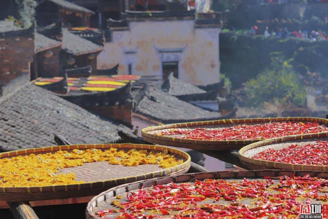 見圳客戶端·深圳新聞網(wǎng)2020年11月25日訊 江西婺源縣篁嶺村獨(dú)特的“曬秋”農(nóng)俗景觀。篁嶺村位于江西省上饒市婺源縣東北部,是著名的“曬秋”文化起源地,也是一座距今近六百年歷史的徽州古村。每當(dāng)日出山頭,數(shù)百棟徽派古民居在百米落差的坡面錯落排布,整個山間村落徽式民居土磚外墻與曬架上五彩繽紛豐收成果組合,繪就出“曬秋”農(nóng)俗特色景觀。