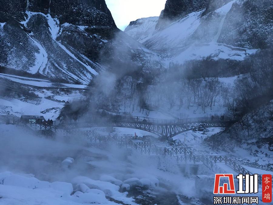 周圍一片銀裝素裹,冰天雪地,而這里熱氣騰騰,煙霧裊裊,實(shí)在是別有一番景致。