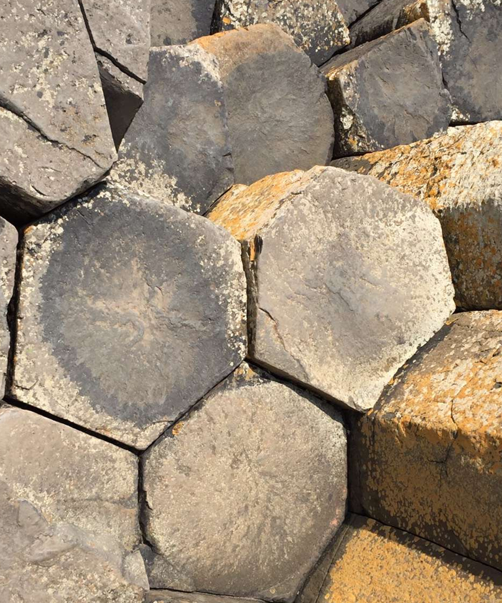 約五千萬年前,在今天蘇格蘭西部內(nèi)赫布里底群島一線至北愛爾蘭東部火山非?;钴S,一股股玄武巖巖熔流從裂隙的地殼中涌出,隨著灼熱的熔巖冷卻收縮,結晶的時候,開始爆裂呈規(guī)則的六邊形形態(tài)。李仁奇 攝