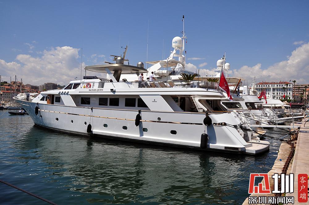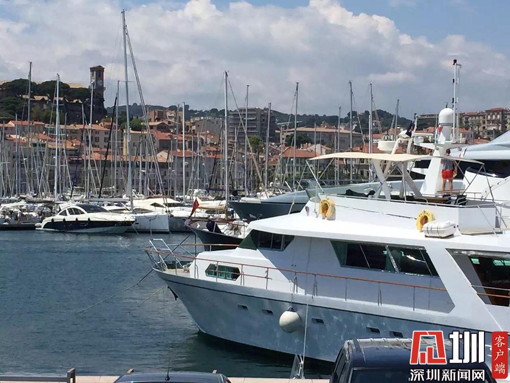圖為??吭陔娪肮?jié)場(chǎng)館旁游艇碼頭的豪華游艇。李仁奇 攝