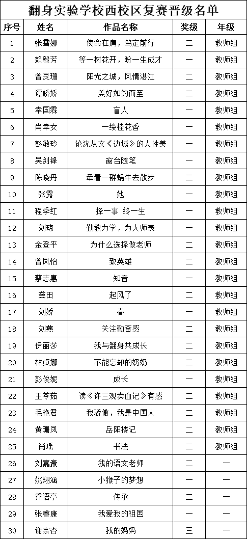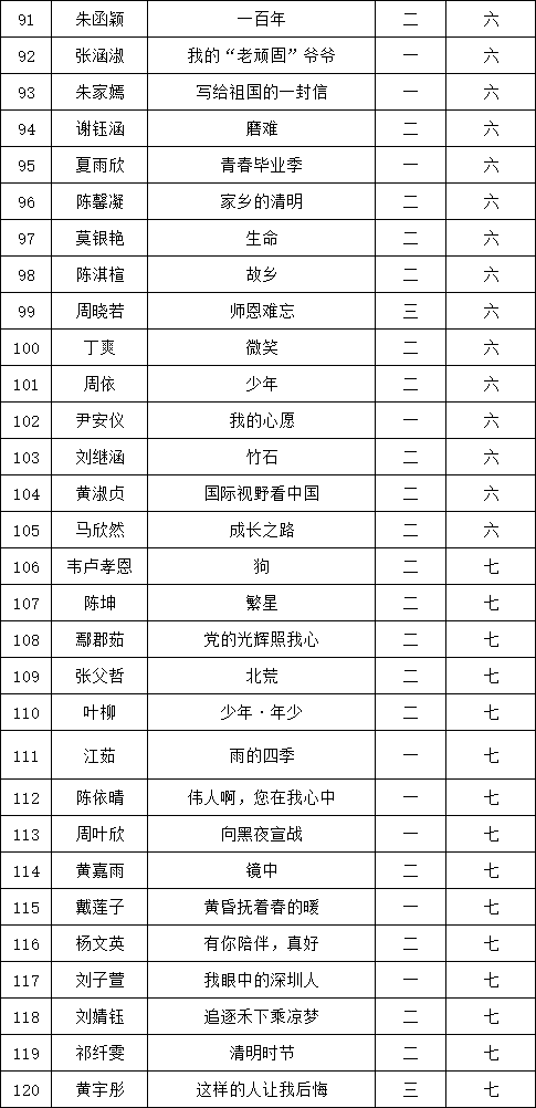 自2021年1月,活動(dòng)征稿啟動(dòng)以來(lái),獲得了深圳市廣大中小學(xué)生、教師、文學(xué)愛好者的熱烈響應(yīng)積極參與,吸引了深圳百余所學(xué)校的上萬(wàn)人關(guān)注報(bào)名。現(xiàn)公布翻身實(shí)驗(yàn)學(xué)校西校區(qū)晉級(jí)復(fù)賽名單如下: