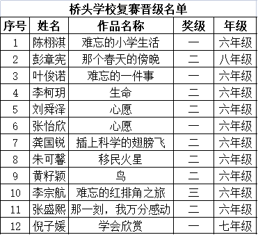 自2021年1月,活動(dòng)征稿啟動(dòng)以來,獲得了深圳市廣大中小學(xué)生、教師、文學(xué)愛好者的熱烈響應(yīng)積極參與,吸引了深圳百余所學(xué)校的上萬人關(guān)注報(bào)名。現(xiàn)公布寶安區(qū)橋頭學(xué)校第二批晉級復(fù)賽名單如下: