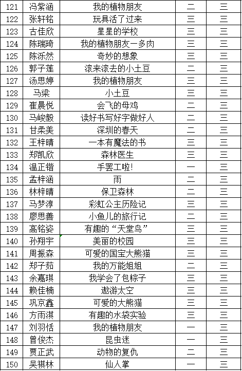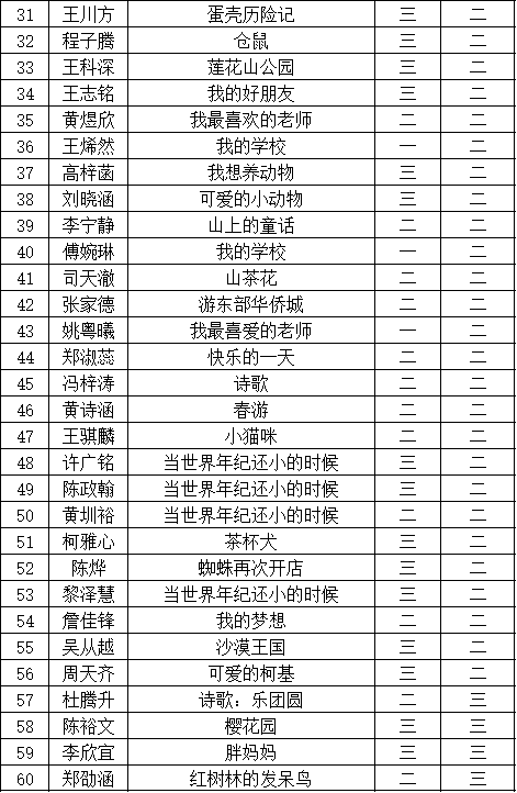 自2021年1月,活動征稿啟動以來,獲得了深圳市廣大中小學(xué)生、教師、文學(xué)愛好者的熱烈響應(yīng)積極參與,吸引了深圳百余所學(xué)校的上萬人關(guān)注報名?,F(xiàn)公布福田區(qū)華新小學(xué)晉級復(fù)賽名單如下: