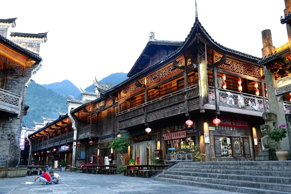 徽式磚砌騎馬墻,古鎮(zhèn)建筑是土家族吊腳樓與徽派建筑的完美結(jié)合。李仁奇 攝