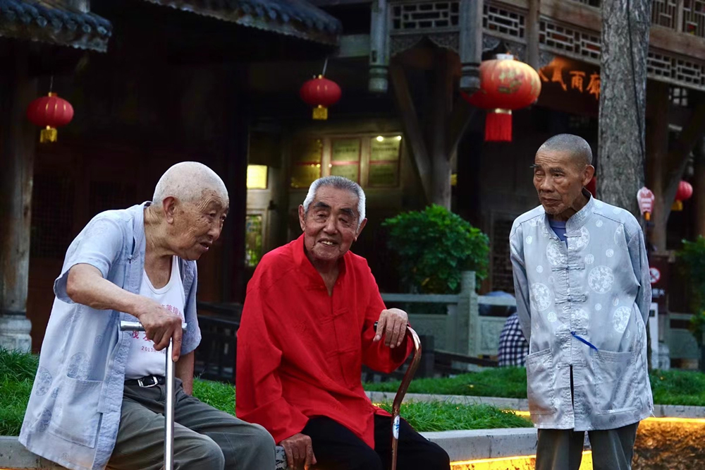 鎮(zhèn)上遛彎的老人。李仁奇 攝