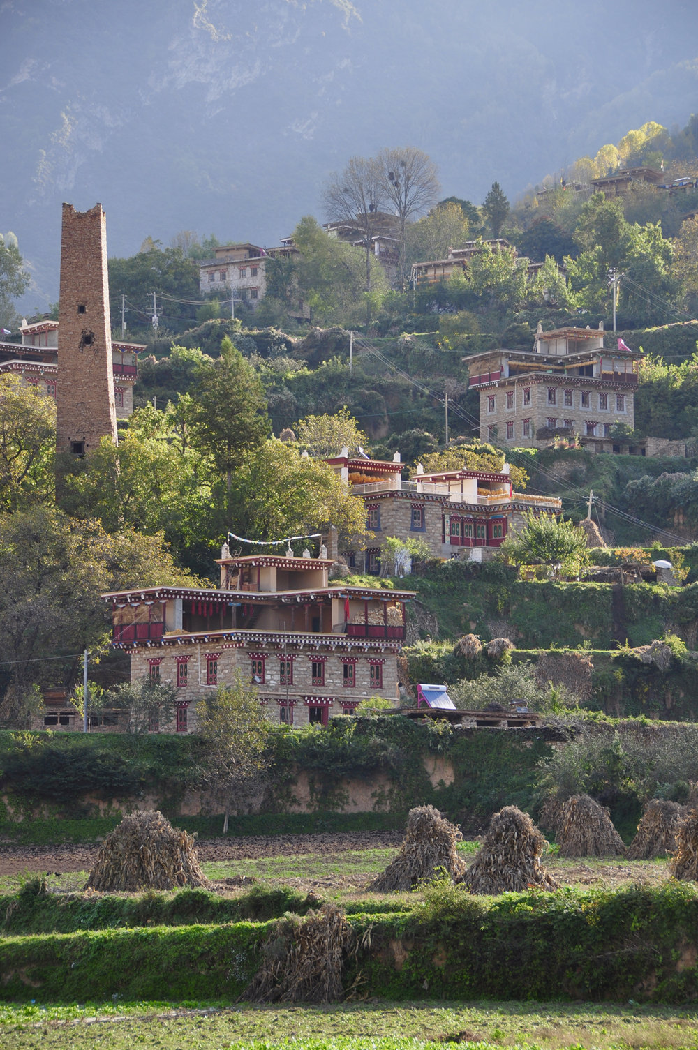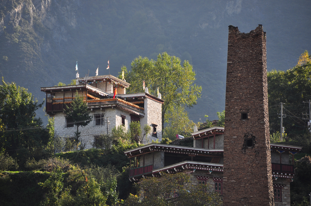 古碉修建的選址因地制宜,既要顧及防洪避災(zāi),還要考慮易守難攻,多建造在視野開闊、向陽避風的山坡上。李仁奇 攝