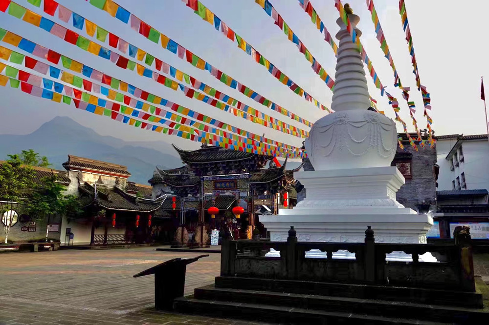 白塔,藏語(yǔ)音譯為“曲登嘎布”,亦稱“吉祥白塔”。塔身外形如藻瓶,粗細(xì)相間,方圓搭配,造型優(yōu)美。水磨白塔是古印度教及藏教?hào)|漸的實(shí)物佐證,亦是歷史上民族團(tuán)結(jié)和文化交流的物證,表達(dá)了各民族人民對(duì)和平、幸福的虔誠(chéng)祈愿。李仁奇 攝