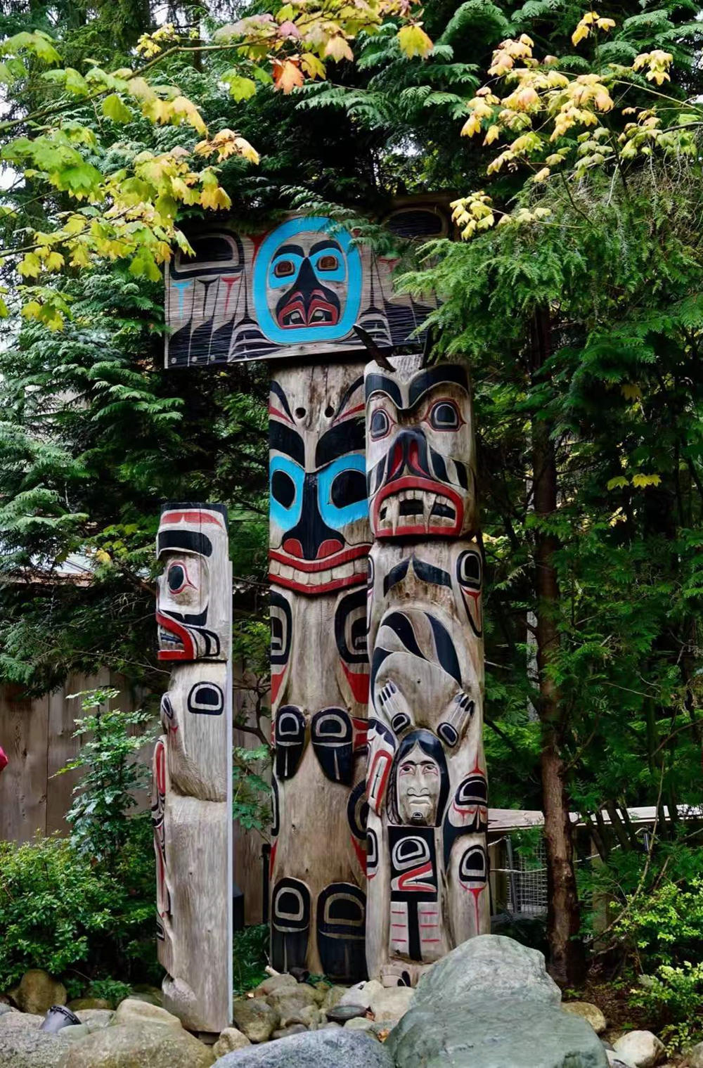 圖騰柱上面刻有帶著不同象征意義圖案,多數(shù)是鷹、熊、人之類的圖騰疊加,每根圖騰柱代表不同的意義,透著一種古樸和粗獷的美。李仁奇 攝