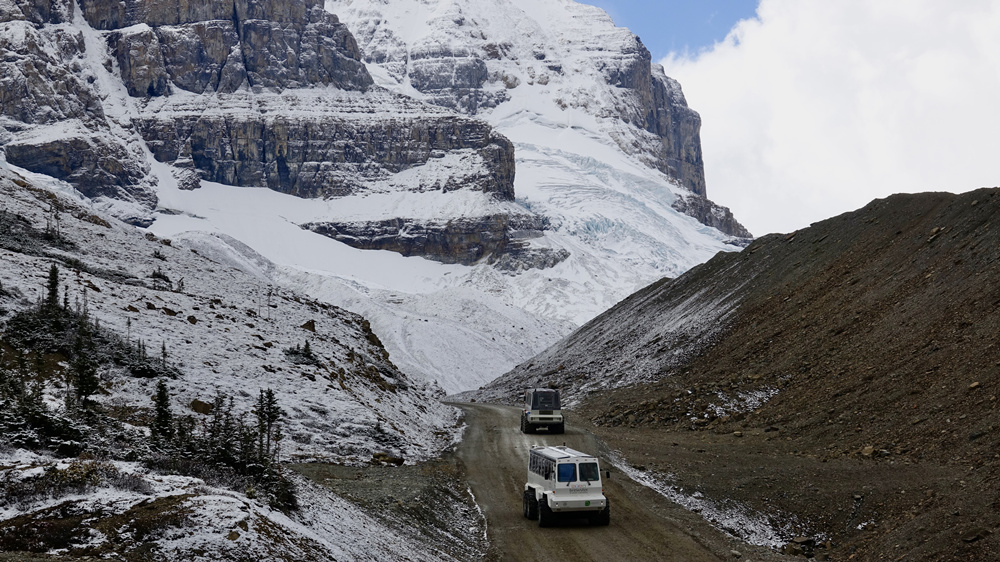 哥倫比亞冰原服務(wù)中心就在冰原大道邊,提供住宿、餐飲、專為游客提供近距離接觸冰川的服務(wù)。李仁奇 攝