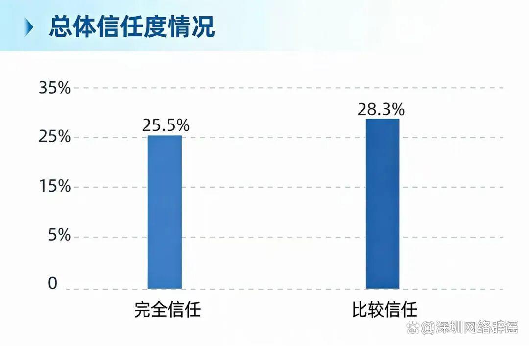 ·受訪群體對(duì)“重慶辟謠”整體信任度53.8%,其中“完全信任”25.5%、“比較信任”28.3%,信任核心源于“重慶辟謠”由重慶市委網(wǎng)信辦主辦的官方屬性。